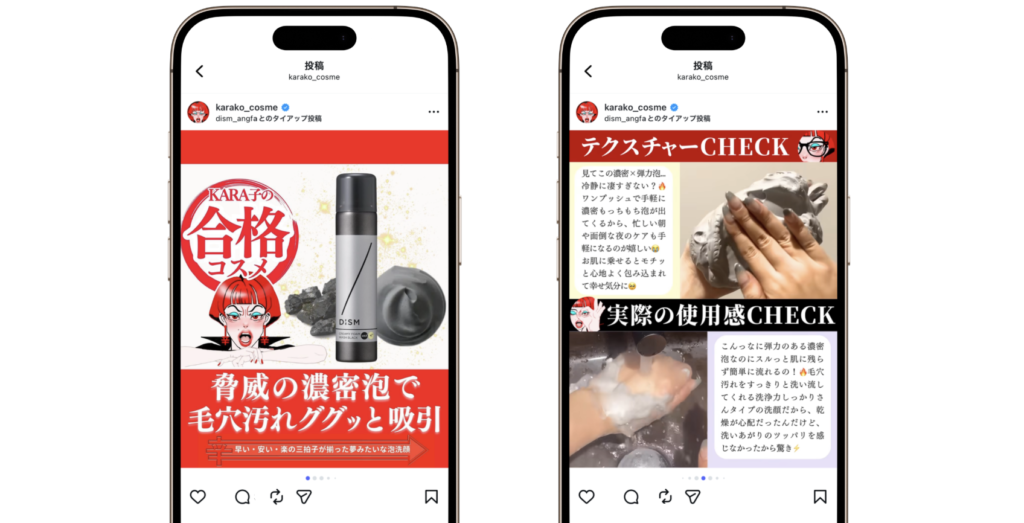 コスメ業界の成功事例として、上の画像のようにインフルエンサーとコラボを行ってPRをする例がよく見られます。