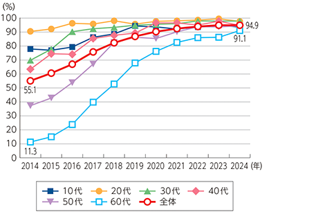 (参照:総務省情報通信政策研究所 令和7年度総務省情報通信白書 コミュニケーションツール・SNS)
