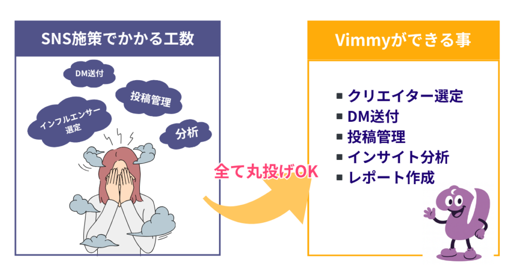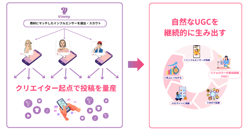 Vimmyでは、インフルエンサー施策からUGC活用まで一気通貫で支援可能です。