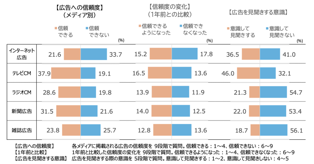 調査でも、インターネット広告の信頼性は決して高くなく、